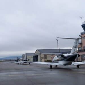 Le parking aéronefs est fortement sollicité, avec une présence notable de Cessna Citation et Citation Mustang.